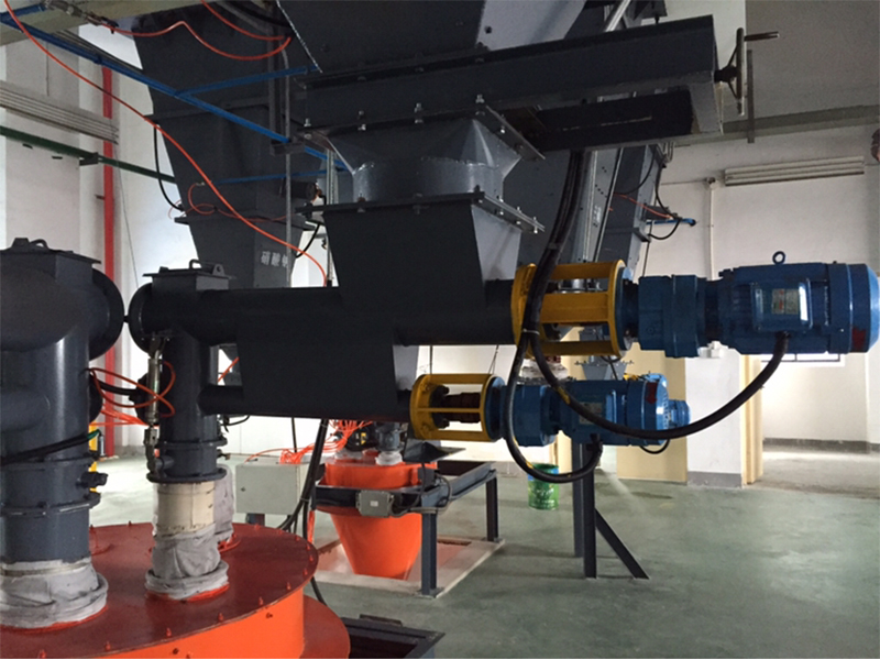 產(chǎn)品描述: 螺旋給料機(jī)是集粉體物料穩(wěn)流輸送、稱重計(jì)量和定量控制為一體的新一代產(chǎn)品;適用于各種工業(yè)生產(chǎn)環(huán)境的粉體物料連續(xù)計(jì)量和配料;采用了多項(xiàng)**技術(shù),運(yùn)行可靠,控制精度高;尤其適用于建材、冶金、電力、化工等行業(yè)粉體物料的連續(xù)計(jì)量和配料?! ÷菪o料機(jī)把經(jīng)過(guò)的物料通過(guò)稱重橋架進(jìn)行檢測(cè)重量,以確定膠帶上的物料重量,裝在尾部的數(shù)字式測(cè)速傳感器,連續(xù)測(cè)量給料機(jī)的運(yùn)行速度,該速度傳感器的脈沖輸出正比于給料機(jī)的速度,速度信號(hào)和重量信號(hào)一起送入給料機(jī)控制器,控制器中的微處理器進(jìn)行處理,產(chǎn)生并顯示累計(jì)量/瞬時(shí)流量。該流量與設(shè)定流量進(jìn)行比較,由控制儀表輸出信號(hào)控制變頻器改變給料機(jī)的驅(qū)動(dòng)速度,使給料機(jī)上的物料流量發(fā)生變化,接近并保持在所設(shè)定的給料流量,從而實(shí)現(xiàn)定量給料的要求?! ≈饕攸c(diǎn) 1、專用于粉狀物料的計(jì)量和控制?! ?、給料螺旋具有獨(dú)特的穩(wěn)流結(jié)構(gòu),在整個(gè)進(jìn)料口截面上料粉均勻下沉,不易結(jié)拱,不易沖料?! ?、擺線針輪減速電機(jī),保證了長(zhǎng)期穩(wěn)定運(yùn)行?! ?、穩(wěn)流螺旋采用變螺距結(jié)構(gòu)和出口溢流方式,有效的解決了物料的沖料難題(產(chǎn)量>60T/H采用雙管穩(wěn)流)?! ?、計(jì)量螺旋秤采用3只高精度傳感器(拉力)直接稱重結(jié)構(gòu),成功的解決了杠桿稱重造成的誤差,使計(jì)量精度大為提高。 6、采用數(shù)字采集模塊,有效分辨率高達(dá)100萬(wàn);采集速率50次/秒;年漂移小于50PPM;溫度漂移小于50PPM?! ?、密封結(jié)構(gòu),減少粉塵外揚(yáng)。